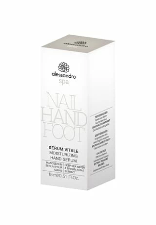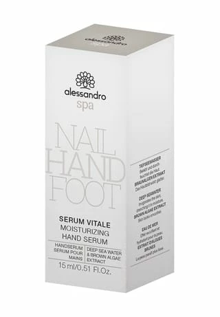 Das hoch konzentrierte Handserum mit Tiefseewasser und Braunalgenextrakt schützt die Hände vor äußeren Umwelteinflüssen und verbessert das Hautbild. Das Serum zieht in wenigen Sekunden ein und hinterlässt keinen Fettfilm. Das Serum Vitale stärkt die Feuchtigkeitsbarriere und verbessert die Elastizität bzw. Festigkeit der Haut.