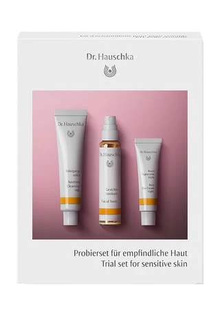 Limited Edition: Dr. Hauschka Probierset für empfindliche Mischhaut. Fettige Hautpartien werden matt und klar, trockene Stellen erhalten eine feuchtigkeitsbewahrende Pflege. Im Set enthalten: Gesichtswaschcreme 10 ml, Gesichtstonikum klärend 10 ml, Melissen Tagescreme 5 ml. Gesichtswaschcreme: reinigt auf milde Weise und verfeinert die Poren. Gesichtstonikum: regt die Eigenkräfte der Haut an und wirkt regulierend auf entzündete Hautpartien. Melissen Tagescreme: beruhigt die Haut und bringt sie ins Gleichgewicht.