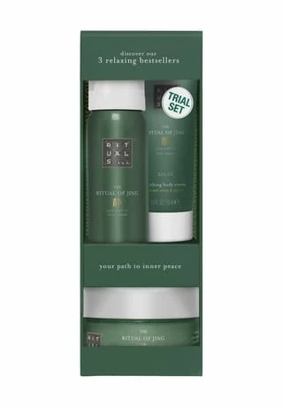 Das Set von The Ritual of Jing ist perfekt zum Kennenlernen von Rituals. Es ist das ideale Geschenk für Freunde oder Familie und beinhaltet drei Entspannungs-Bestseller: einen Duschschaum, eine Körpercreme und ein Körperpeeling. Alle Produkte sind angereichert mit den beruhigenden Inhaltsstoffen heiliger Lotus und Jujube.
