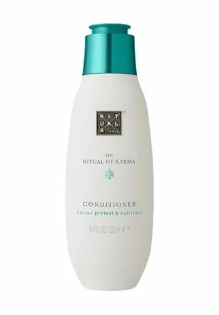 Pflegen Sie Ihr Haar mit dem The Ritual of Karma Conditioner mit Farbschutz. Die Kombination aus Sonnenblumenkernextrakt und Vitamin E schützt Ihr Haar vor UV-Strahlung, verlängert die Haltbarkeit Ihrer Coloration und verleiht Ihrem Haar mehr Glanz. Reisextrakt und Macadamianussöl schützten, stärken und regenerieren das Haar und spenden intensive Feuchtigkeit. Für strahlendes und gepflegtes Haar mit intensivem Glanz. Dieser nährende Conditioner macht das Haar leicht kämmbar und eignet sich für die tägliche Haarwäsche und alle Haartypen, besonders für coloriertes Haar. Für optimale Ergebnisse in Kombination mit dem Shampoo derselben Kollektion verwenden.
