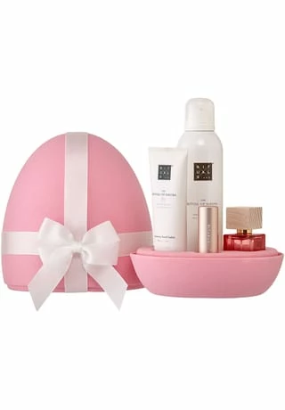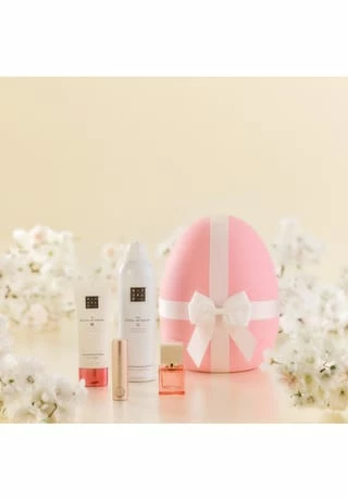 einen The Ritual of Sakura Duschschaum (200 ml), einen The Ritual of Sakura Handbalsam (70 ml), ein Rêve de Hanami Parfum in Reisegröße (15 ml) und einen Fortune Nude Lippenbalsam (4,8 g).