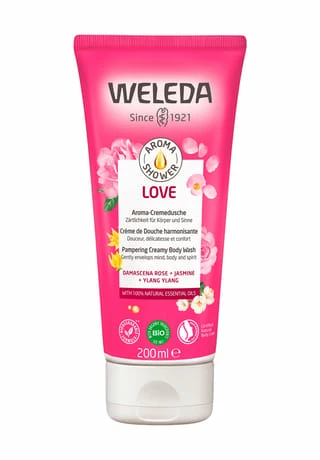 Umhüllen Sie sich mit Liebe und Zärtlichkeit. Die Aroma Shower Love verwöhnt Ihre Sinne mit einem Duft mit Damaszener Rose, Jasmin und Ylang-Ylang. Die Aroma-Cremedusche weckt ein Gefühl von Harmonie und unterstützt Ihr natürliches Wohlbefinden mit der Kraft von 100 % natürlichen ätherischen Ölen und Pflanzenextrakten. Schließen Sie Ihre Augen, atmen Sie tief durch und lassen Sie sich vom sanft-blumigen Duft berühren, während unsere biologisch abbaubare Rezeptur (gemäß OECD) Ihre Haut weich und geschmeidig pflegt. Milde Tenside auf pflanzlicher Basis reinigen Ihre Haut sanft.